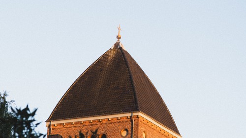 Billedet af kirkens tårn i aftensolen er taget af Sam Leitch i forbindelse med S. Carey koncerten i september.