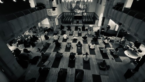 Fyraftensyoga foregår i kirkerummet hver tirsdag eftermiddag kl. 16.00-17.00. Vi begynder til tiden, og dørene lukkes 2 minutter før eller når kirken er fuld. Så kom i god tid hvis du vil være sikker på en plads. Dørene åbner 15.40